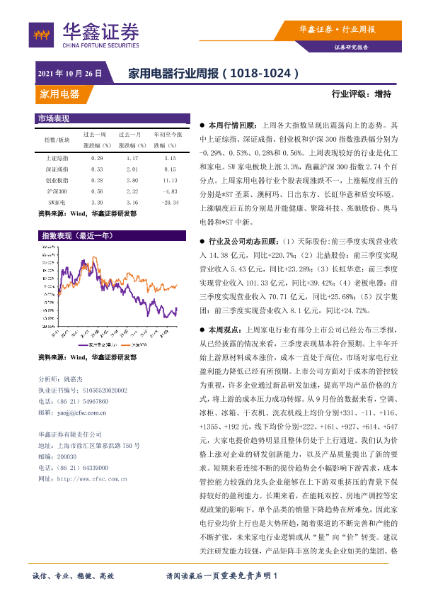【华鑫证券】【20211026】20211026-华鑫证券-家用电器行业周报-10页
