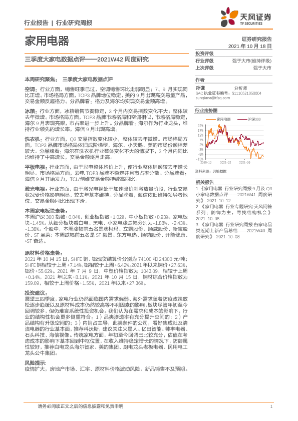 【天风证券】【20211018】家用电器2021W42周度研究:三季度大家电数据点评-15页