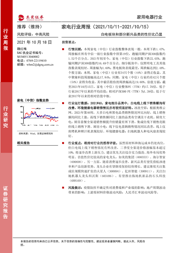 【东莞证券】【20211018】家电行业周报:白电板块和部分新兴品类的性价比凸显-14页