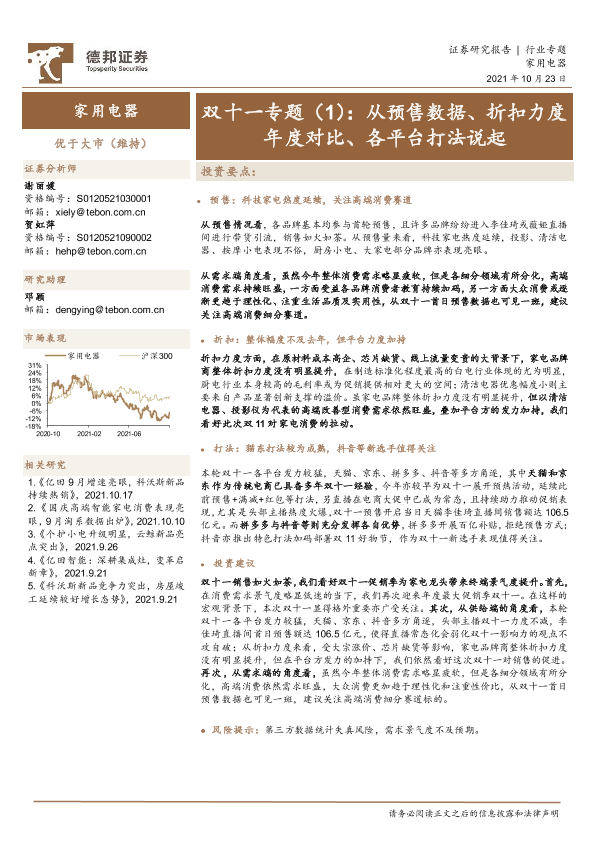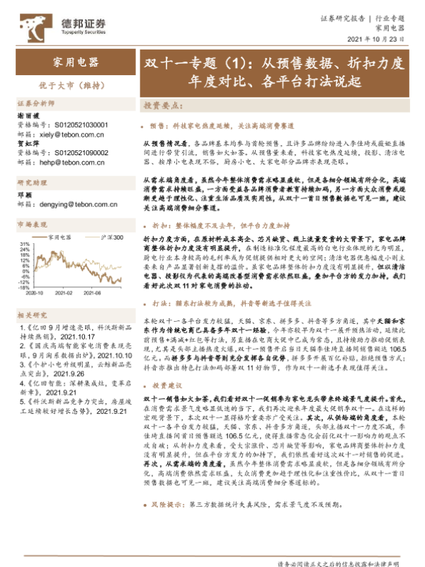 【德邦证券】【20211023】家用电器双十一专题(1):从预售数据、折扣力度年度对比、各平台打法说起-11页