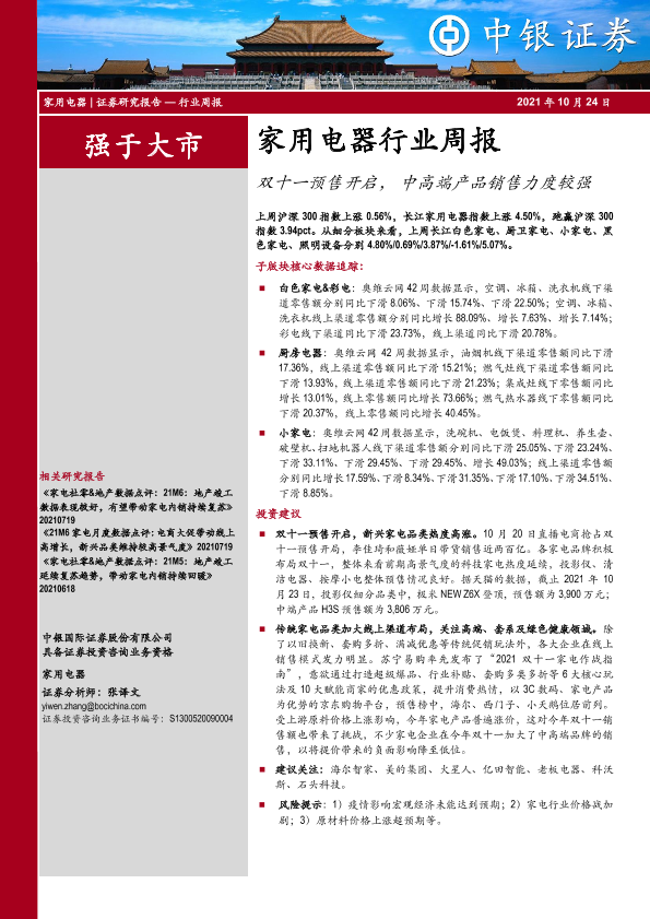 【中银证券】【20211024】家用电器行业周报:双十一预售开启,中高端产品销售力度较强-31页