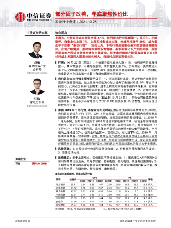 【中信证券】【20211025】家电行业点评:部分因子改善,年底聚焦性价比-2页