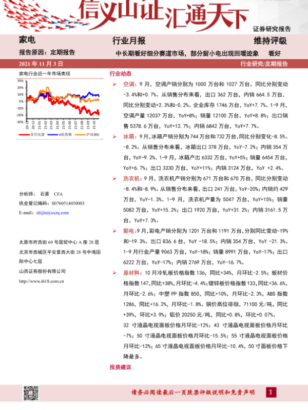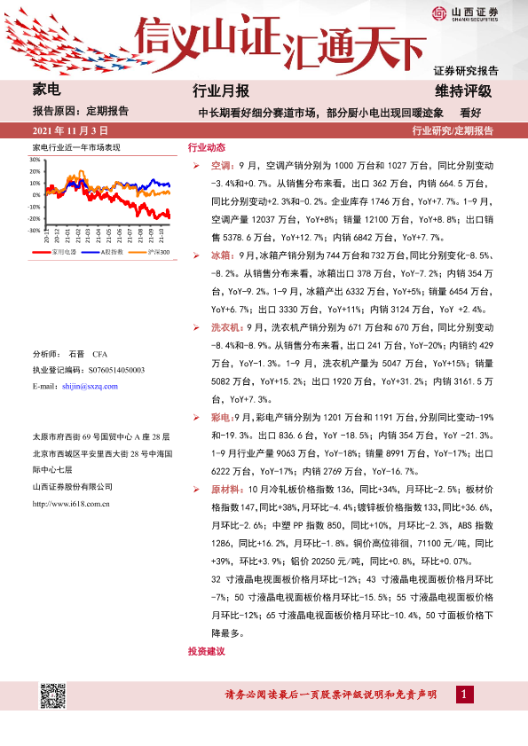 【山西证券】【20211103】20211103-山西证券-家电行业月报:中长期看好细分赛道市场,部分厨小电出现回暖迹象-14页