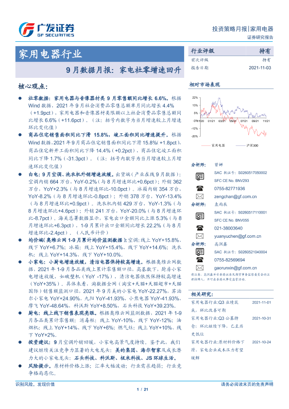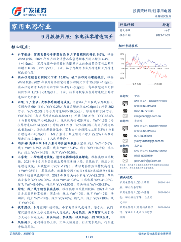 【广发证券】【20211103】家用电器行业9月数据月报:家电社零增速回升-21页
