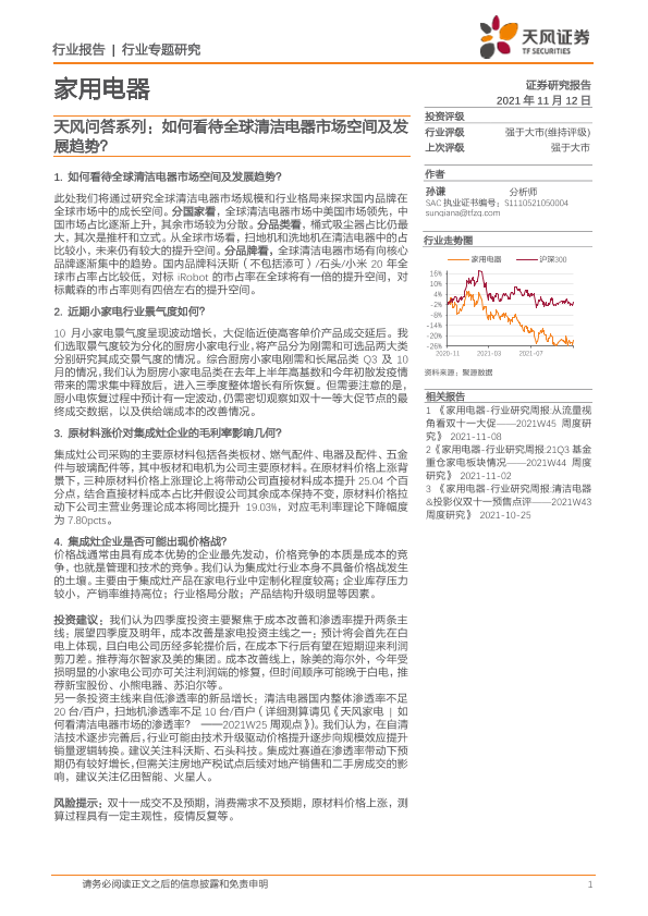【天风证券】【20211112】家用电器天风问答系列:如何看待全球清洁电器市场空间及发展趋势?-15页
