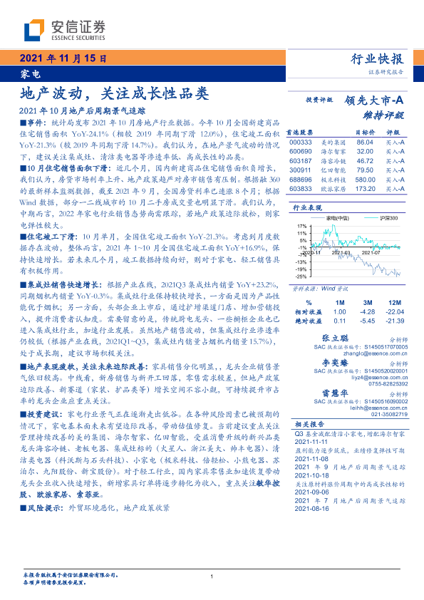 【安信证券】【20211115】家电:地产波动,关注成长性品类-4页