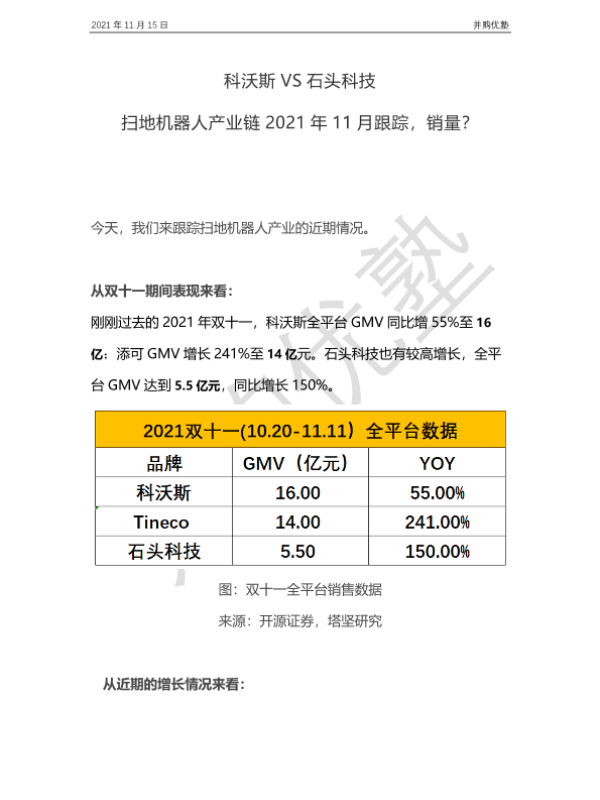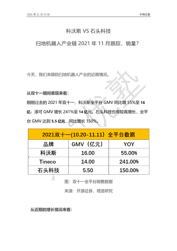 【并购优塾】【20211115】科沃斯VS石头科技:扫地机器人产业链2021年11月跟踪,销量?-22页