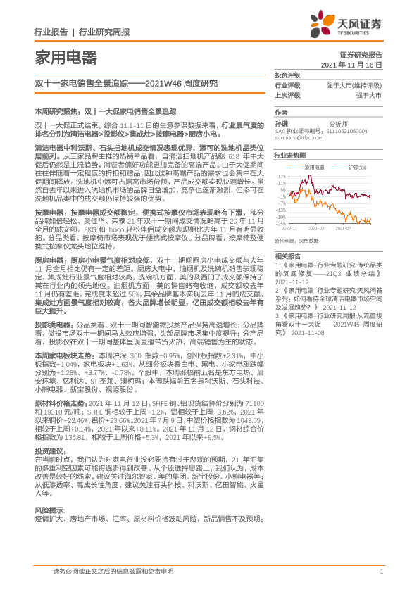 【天风证券】【20211116】家用电器2021W46周度研究:双十一家电销售全景追踪-20页
