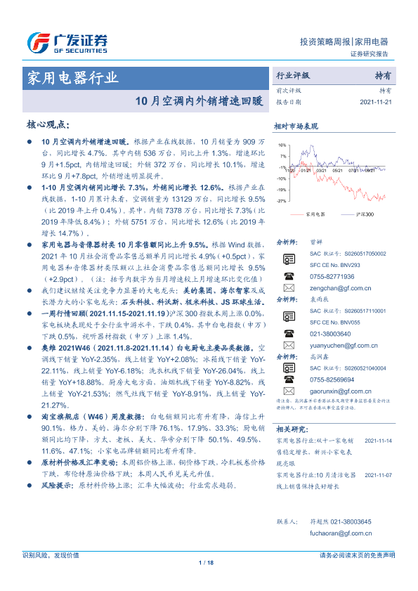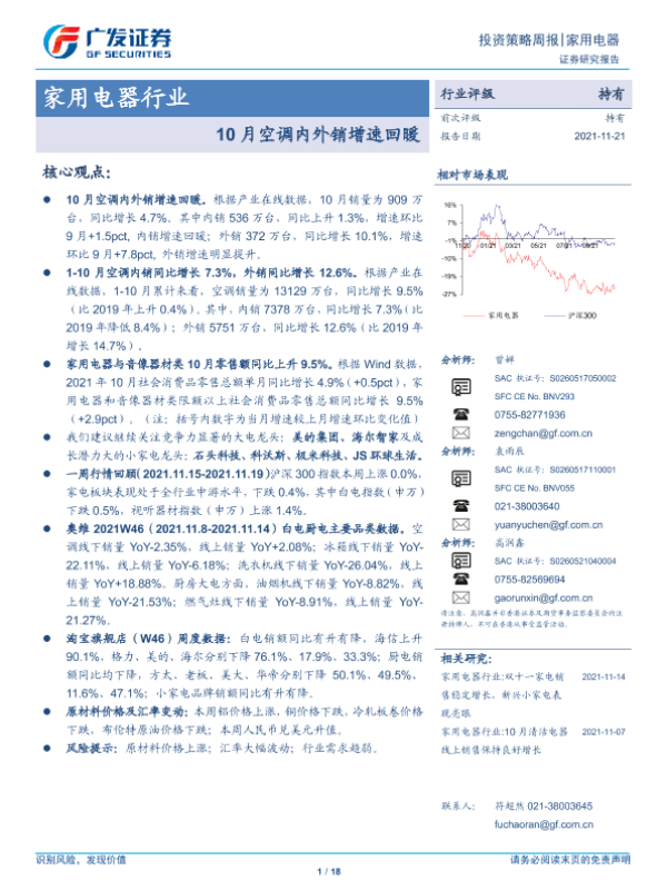 【广发证券】【20211121】20211121-广发证券-家用电器行业投资策略周报:10月空调内外销增速回暖-18页