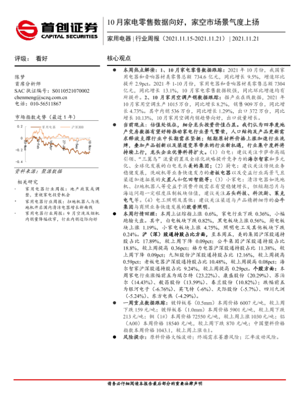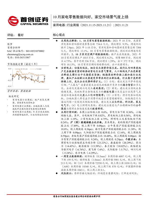 【首创证券】【20211121】20211121-首创证券-家用电器行业周报:10月家电零售数据向好,家空市场景气度上扬-16页