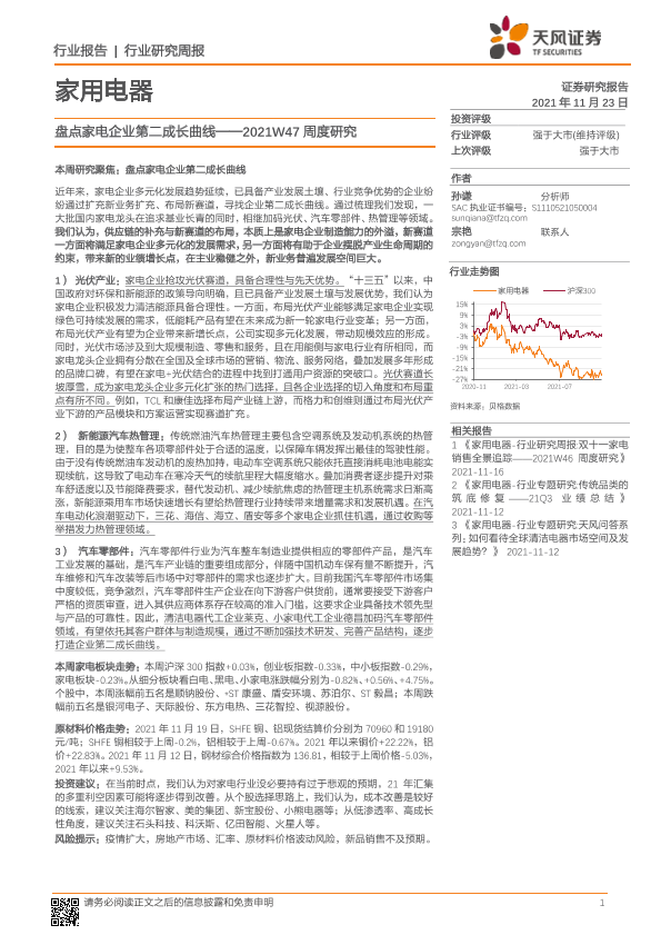 【天风证券】【20211123】家用电器2021W47周度研究:盘点家电企业第二成长曲线-15页