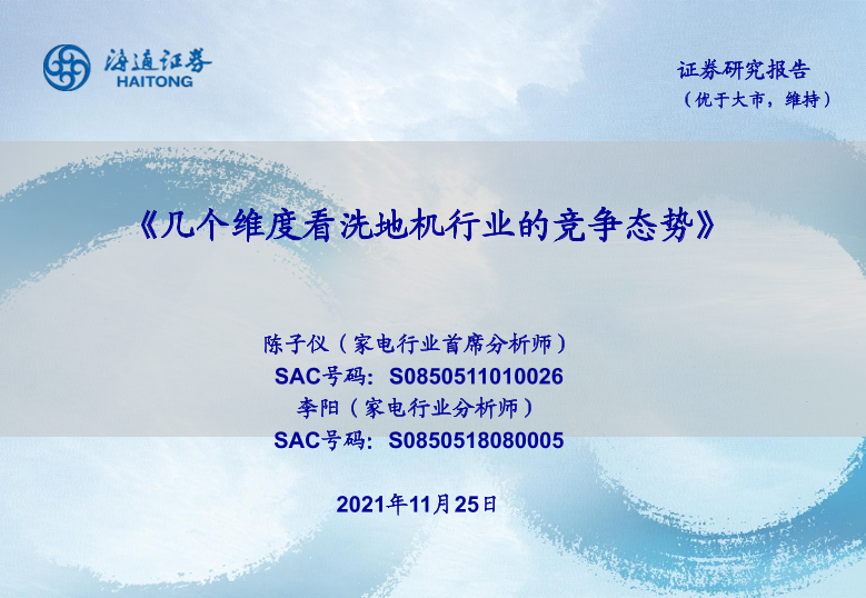 【海通证券】【20211125】几个维度看洗地机行业的竞争态势-25页