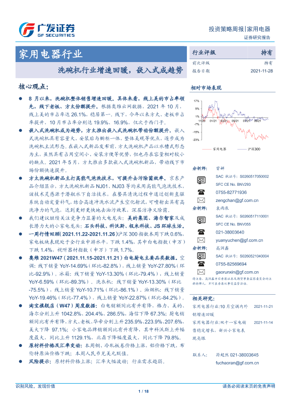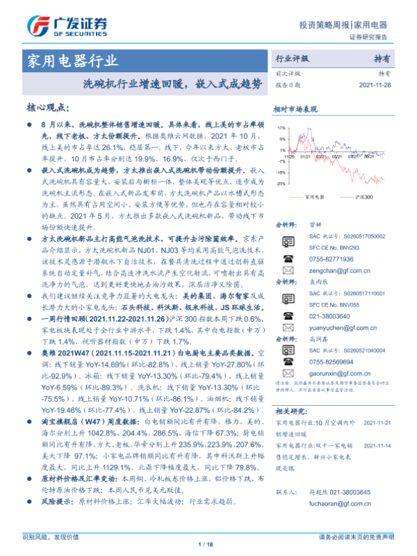 【广发证券】【20211128】家用电器行业:洗碗机行业增速回暖,嵌入式成趋势-18页