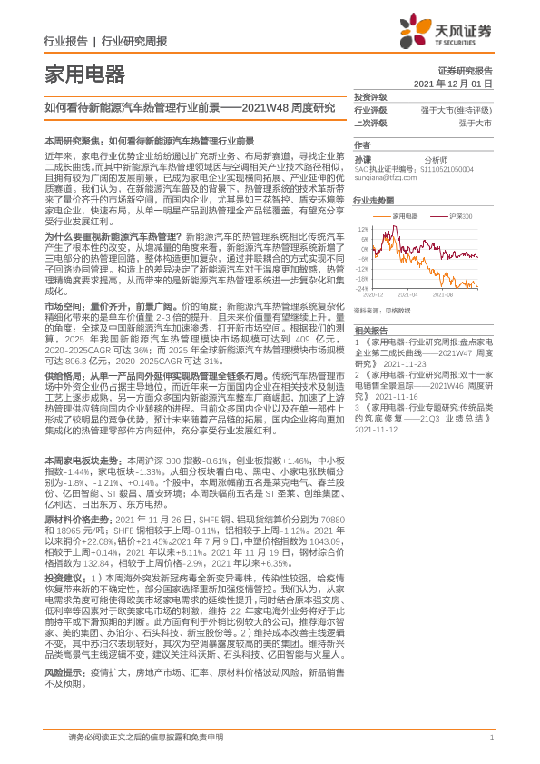 【天风证券】【20211201】家用电器2021W48周度研究:如何看待新能源汽车热管理行业前景-18页