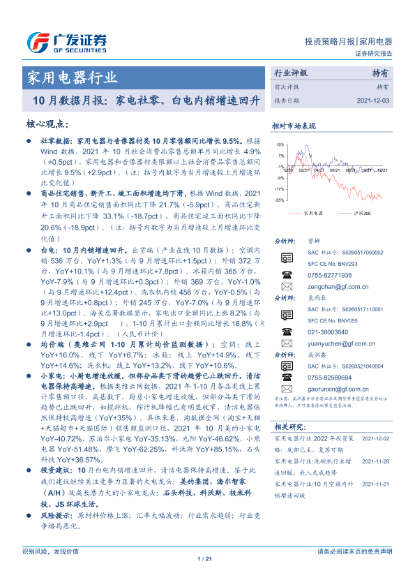 【广发证券】【20211203】家用电器行业10月数据月报:家电社零、白电内销增速回升-21页