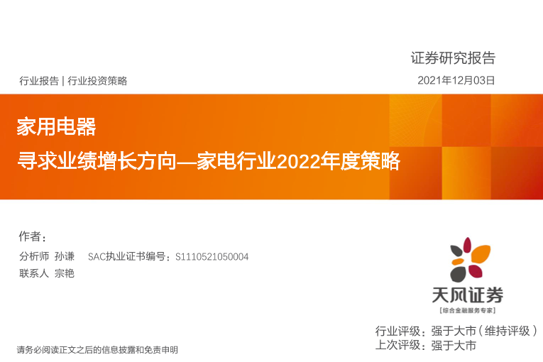 【天风证券】【20211203】寻求业绩增长方向—家电行业2022年度策略-37页