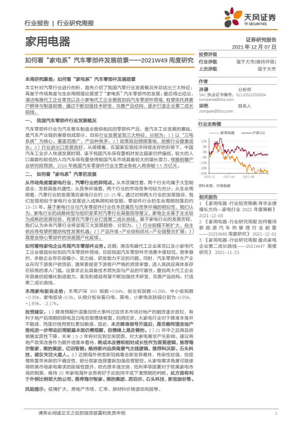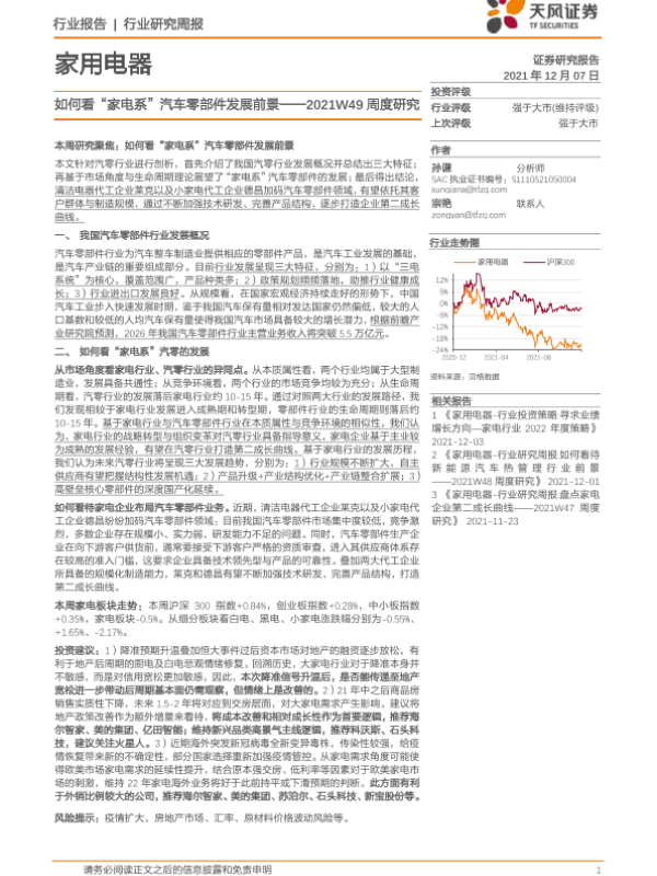 【天风证券】【20211207】家用电器2021W49周度研究:如何看“家电系”汽车零部件发展前景-17页