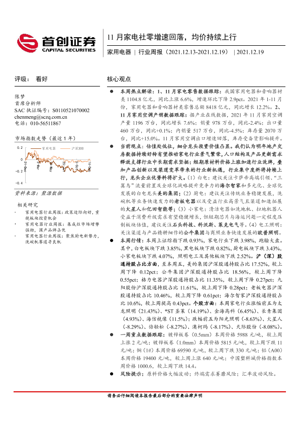 【首创证券】【20211219】20211219-首创证券-家用电器行业周报:11月家电社零增速回落,均价持续上行-17页