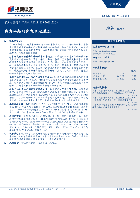 【华创证券】【20211226】家用电器行业双周报:冉冉兴起的家电家装渠道-28页