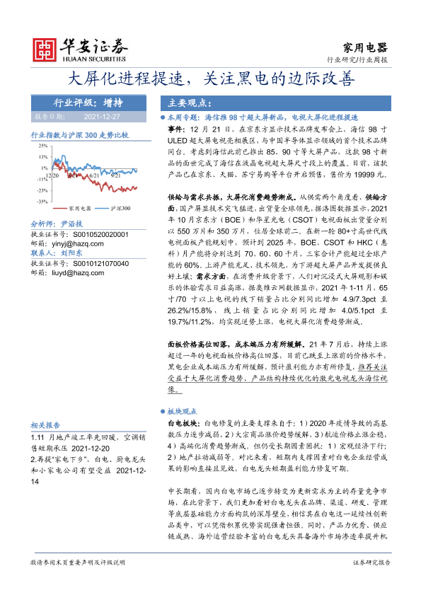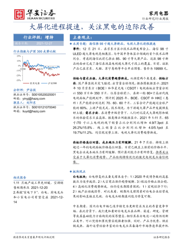 【华安证券】【20211227】20211227-华安证券-家用电器行业周报:大屏化进程提速,关注黑电的边际改善-13页