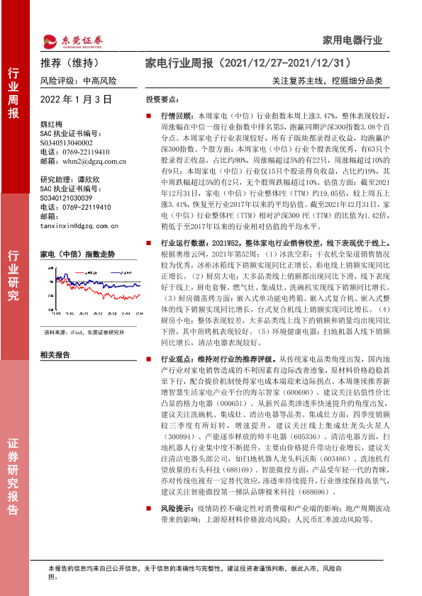 【东莞证券】【20220103】20220103-东莞证券-家电行业周报:关注复苏主线,挖掘细分品类-13页
