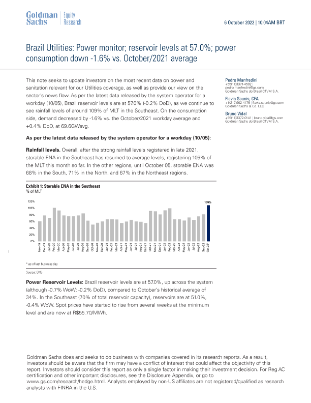 【Goldman Sachs】【20221006】Brazil Utilities Power monitor; reservoir levels at 57.0%; power consumption down -1.6% vs. October/2021 average-6页