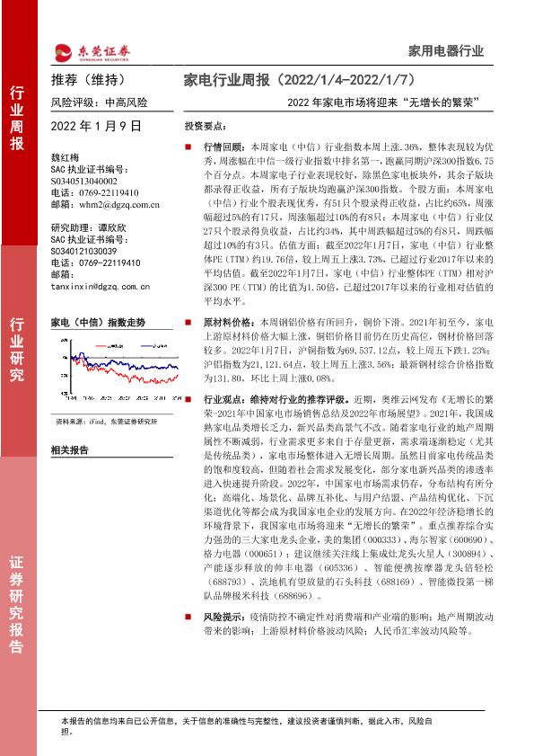 【东莞证券】【20220109】2022年家电市场将迎来“无增长的繁荣”-14页
