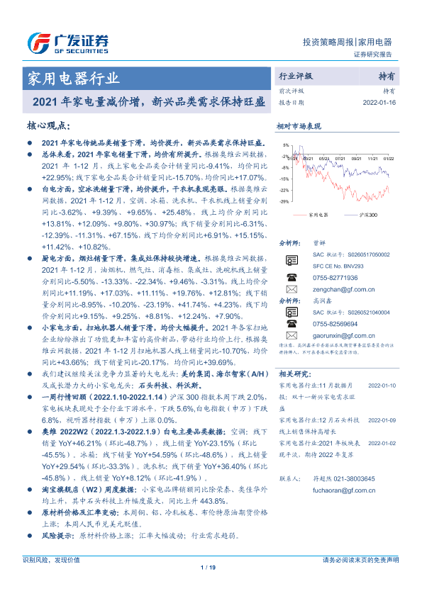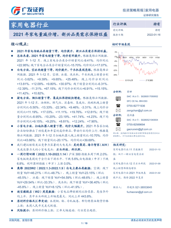 【广发证券】【20220116】20220116-广发证券-家用电器行业投资策略周报:2021年家电量减价增,新兴品类需求保持旺盛-19页