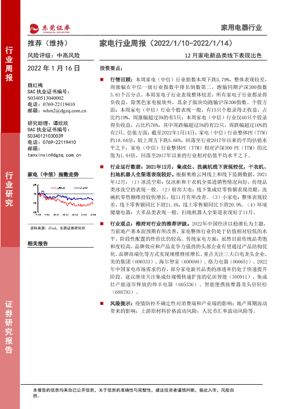 【东莞证券】【20220116】家电行业周报:12月家电新品类线下表现出色-13页