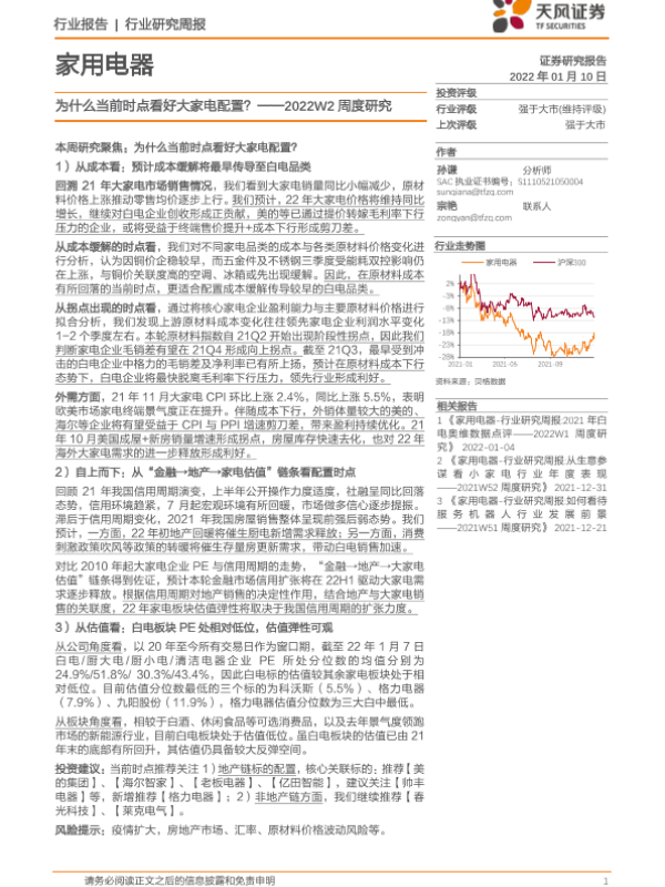 【天风证券】【20220110】2022W2周度研究:为什么当前时点看好大家电配置?-18页