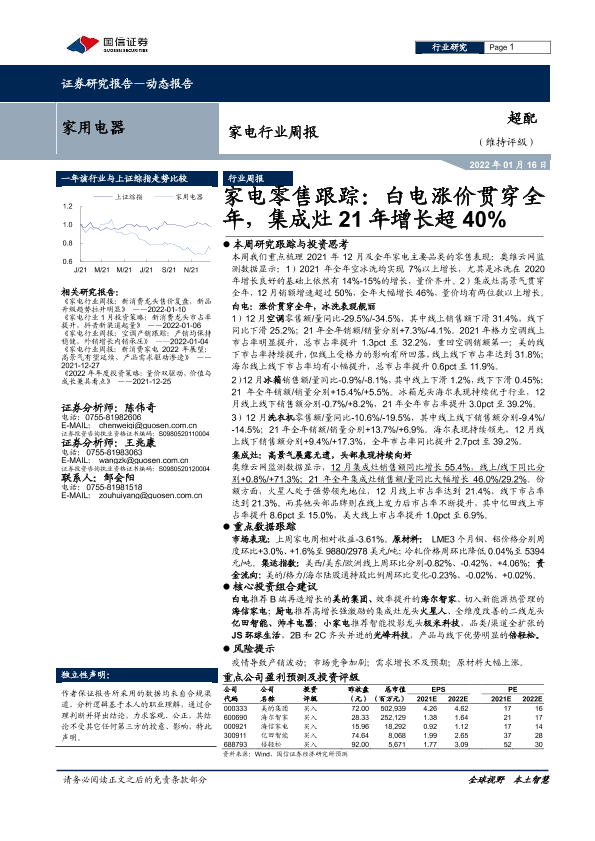 【国信证券】【20220116】家电零售跟踪:白电涨价贯穿全年,集成灶21年增长超40%-14页