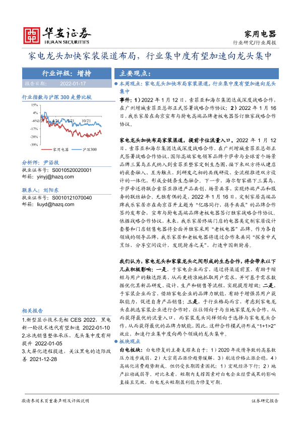 【华安证券】【20220117】家用电器行业周报:家电龙头加快家装渠道布局,行业集中度有望加速向龙头集中-13页