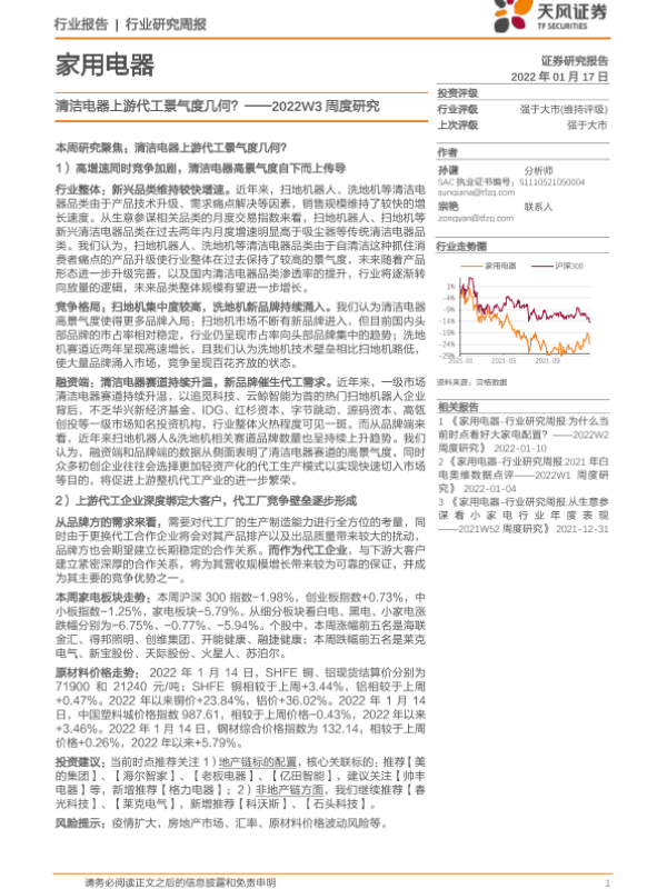【天风证券】【20220117】家用电器2022W3周度研究:清洁电器上游代工景气度几何?-16页