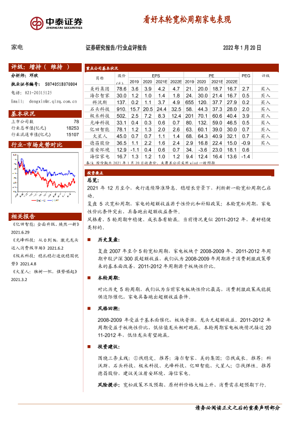 【中泰证券】【20220120】20220120-中泰证券-家电行业点评报告:看好本轮宽松周期家电表现-8页