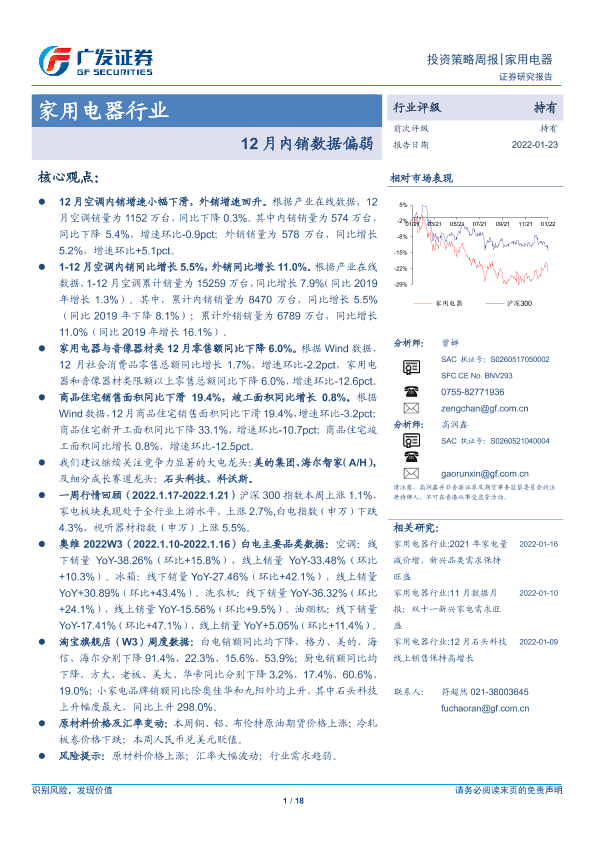 【广发证券】【20220123】家用电器行业投资策略周报:12月内销数据偏弱-18页