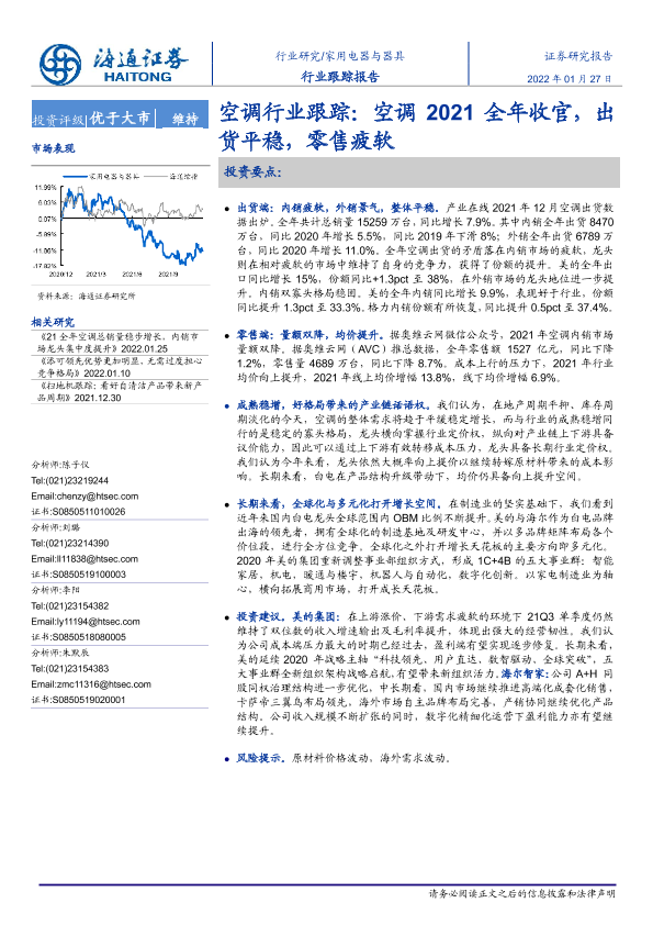 【海通证券】【20220127】空调2021全年收官,出货平稳,零售疲软-4页