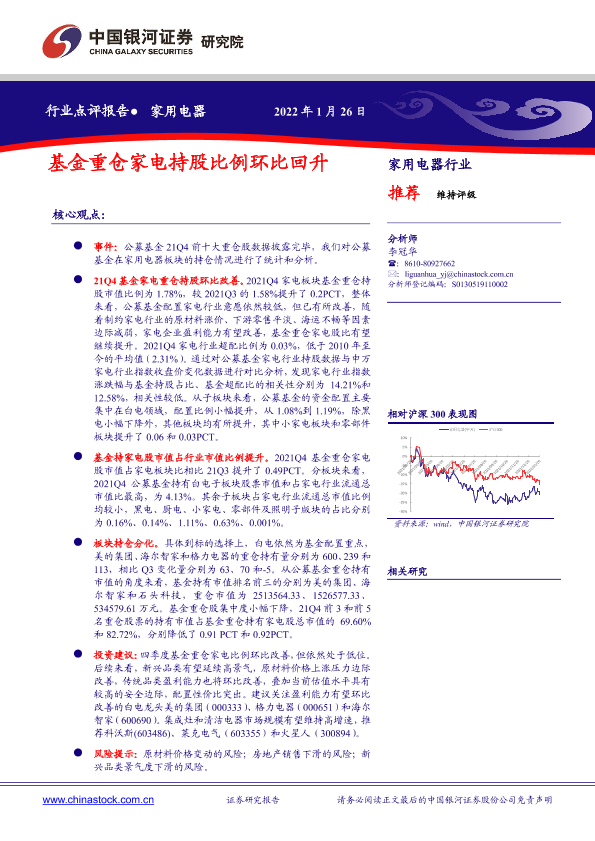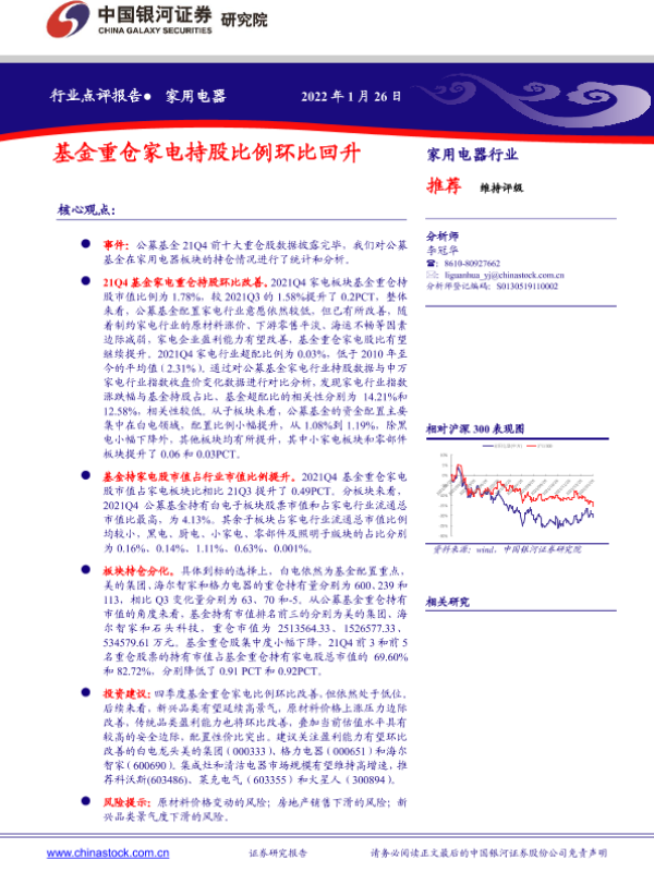 【银河证券】【20220126】20220126-中国银河-家用电器行业点评报告:基金重仓家电持股比例环比回升-7页