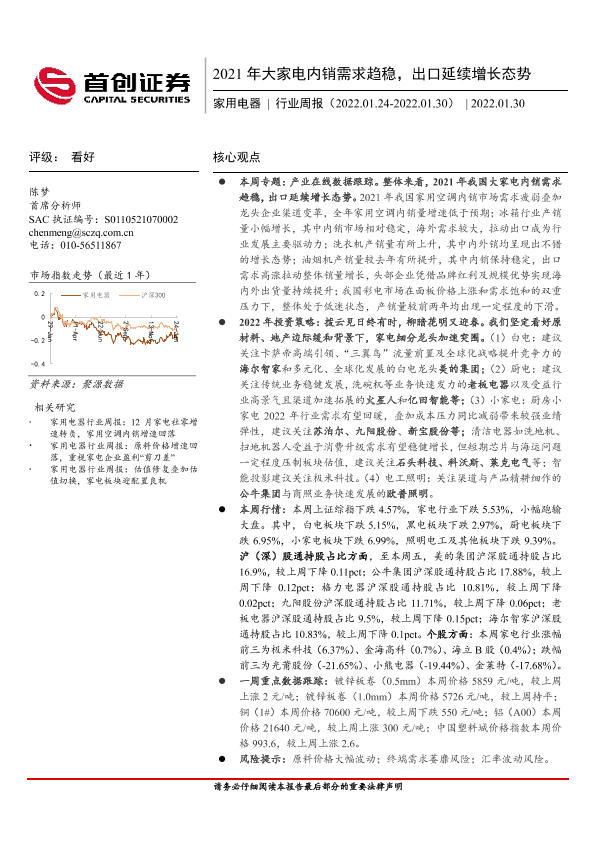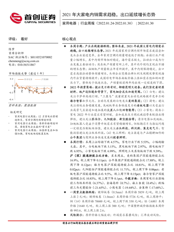 【首创证券】【20220130】20220130-首创证券-家用电器行业周报:2021年大家电内销需求趋稳,出口延续增长态势-18页