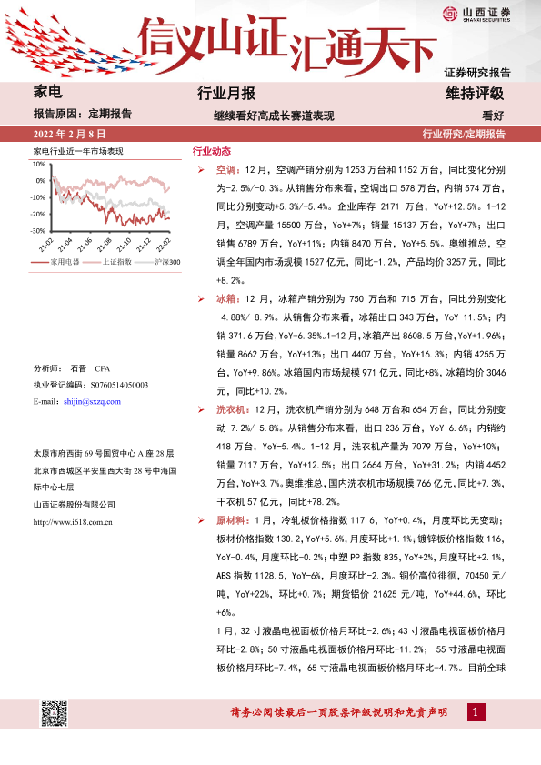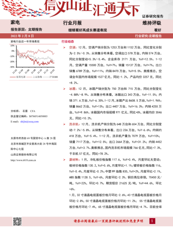 【山西证券】【20220208】20220208-山西证券-家电行业月报:继续看好高成长赛道表现-14页