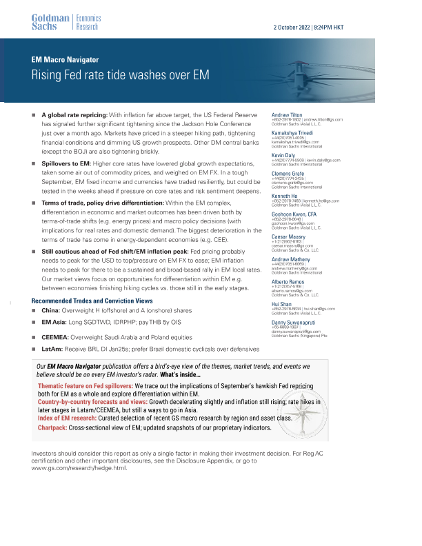 【Goldman Sachs】【20221002】EM Macro Navigator Rising Fed rate tide washes over EM-41页