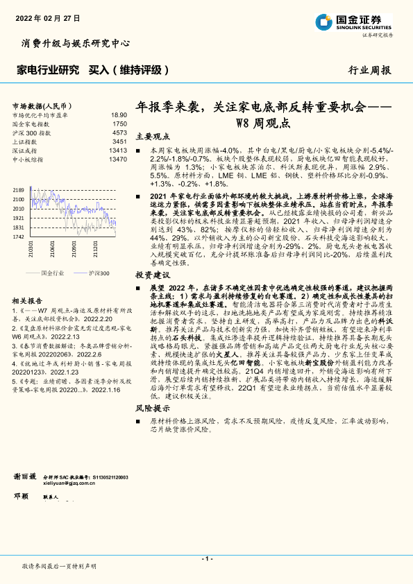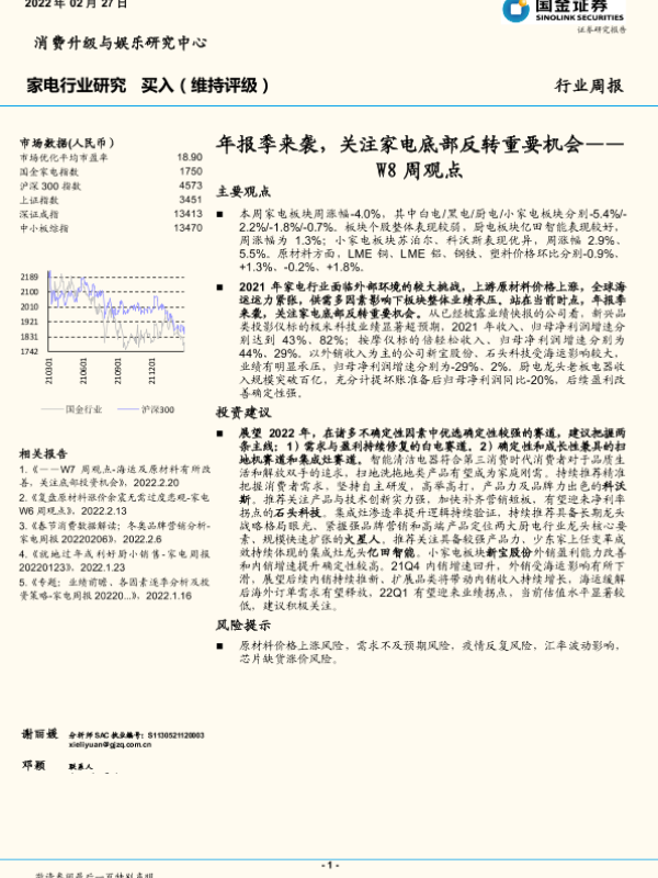【国金证券】【20220227】20220227-国金证券-家电行业研究W8周观点:年报季来袭,关注家电底部反转重要机会-21页