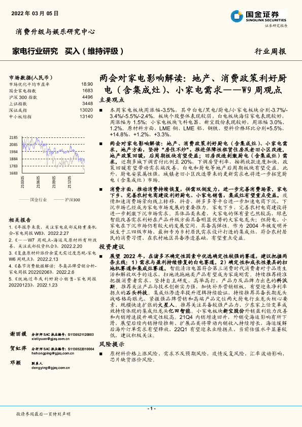 【国金证券】【20220305】两会对家电影响解读:地产、消费政策利好厨电(含集成灶)、小家电需求-15页