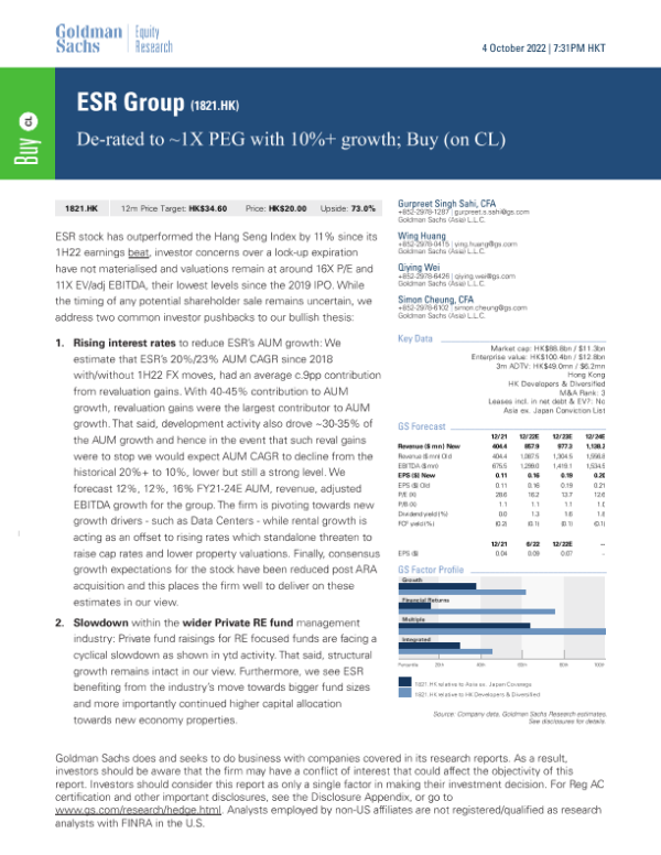 【Goldman Sachs】【20221004】ESR Group (1821.HK)_ De-rated to 1X PEG with 10%+ growth; Buy (on CL)-16页