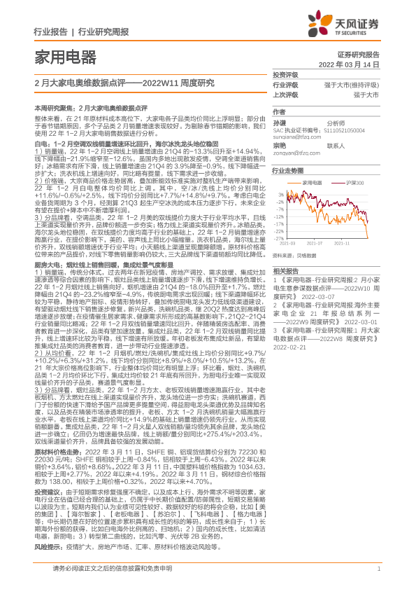 【天风证券】【20220314】家用电器2022W11周度研究:2月大家电奥维数据点评-18页