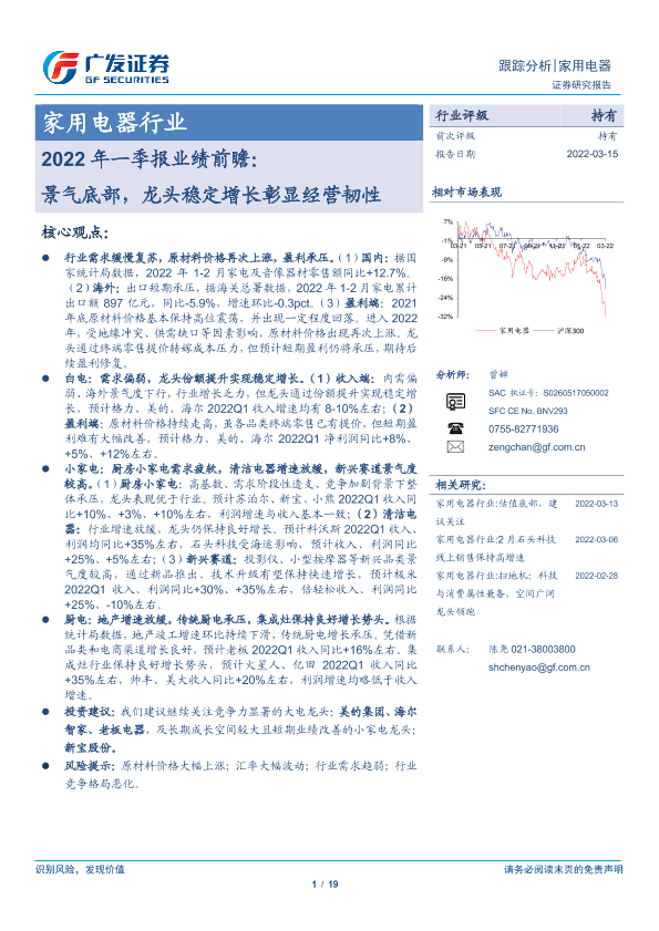 【广发证券】【20220315】家用电器行业2022年一季报业绩前瞻:景气底部,龙头稳定增长彰显经营韧性-19页