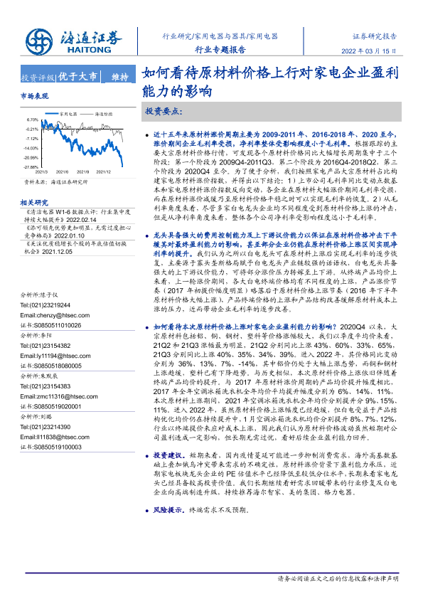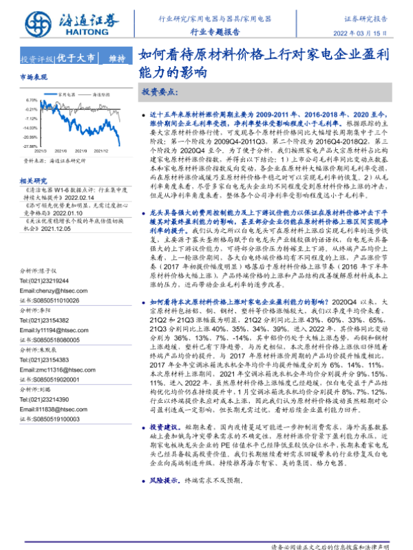 【海通证券】【20220315】20220315-海通证券-家用电器行业专题报告:如何看待原材料价格上行对家电企业盈利能力的影响-16页