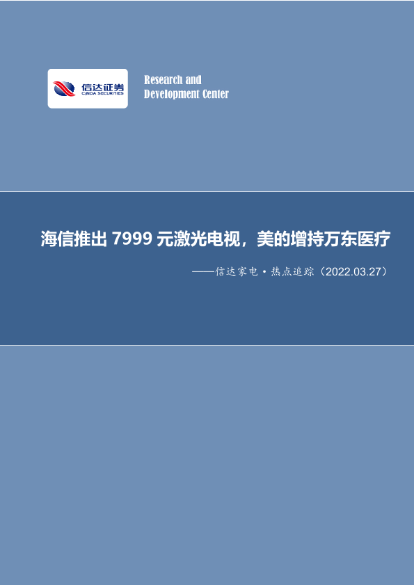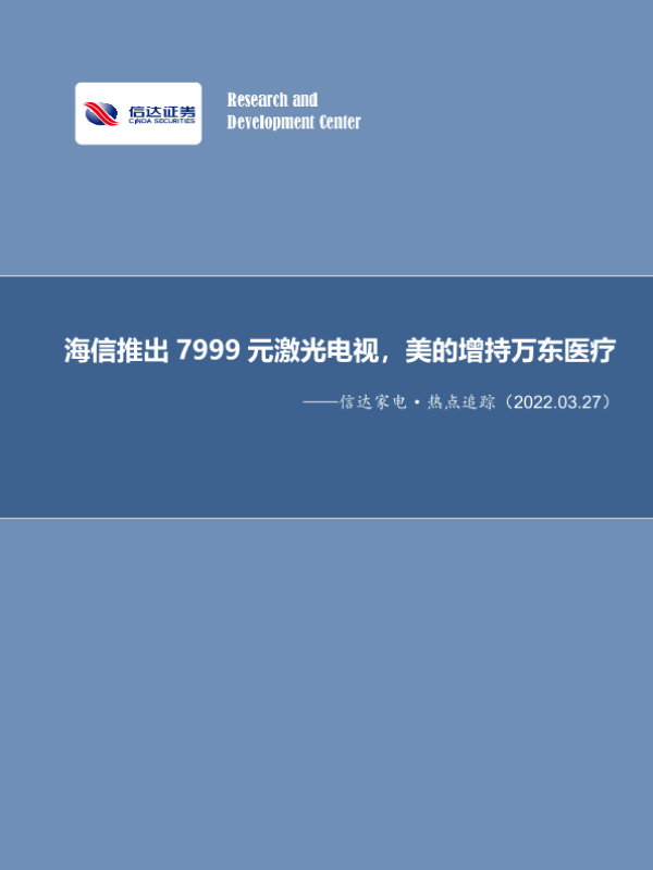 【信达证券】【20220327】信达家电·热点追踪:海信推出7999元激光电视,美的增持万东医疗-12页