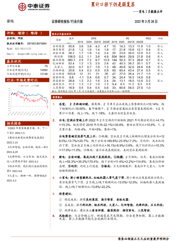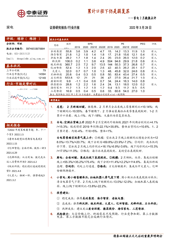 【中泰证券】【20220328】家电2月数据点评:累计口径下仍是弱复苏-15页