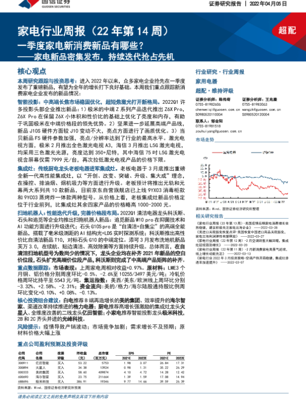 【国信证券】【20220405】家电行业周报(22年第14周):家电新品密集发布,持续迭代抢占先机-一季度家电新消费新品有哪些?-13页