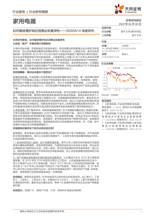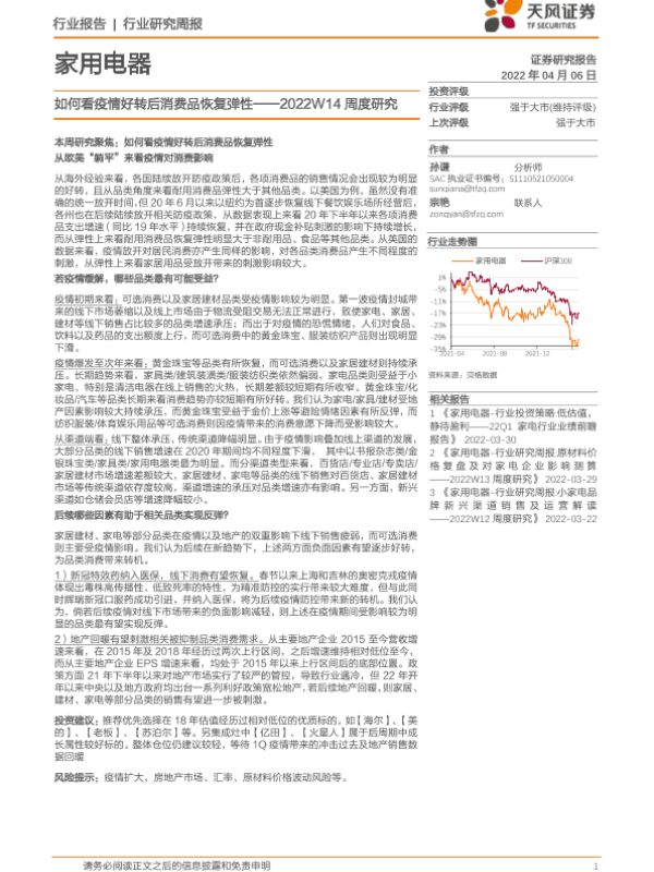 【天风证券】【20220406】家用电器2022W14周度研究:如何看疫情好转后消费品恢复弹性-18页